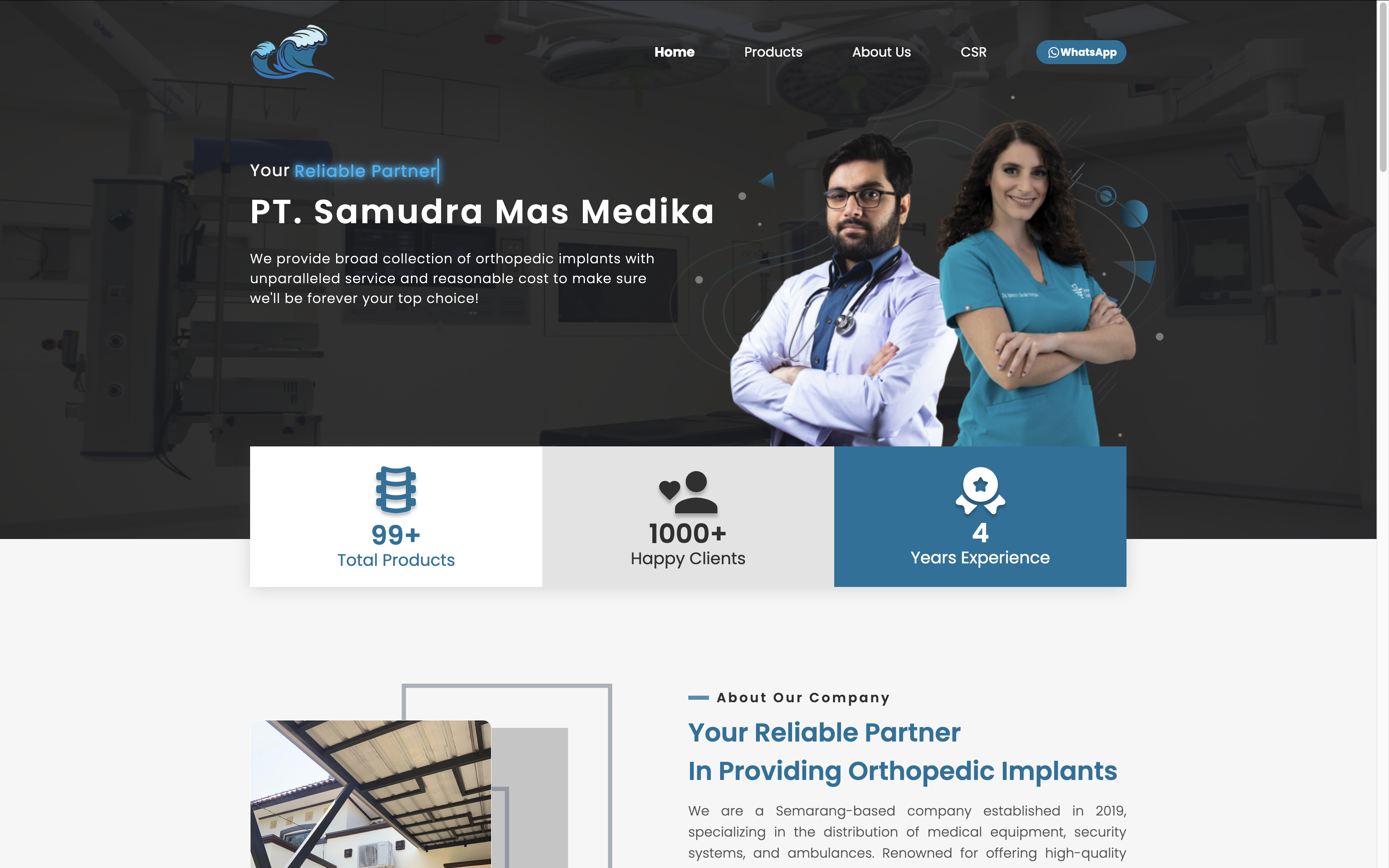 This website was created for PT. Samudra Mas Medika, a medical equipment distribution company specializing in orthopedic products and based in Semarang. The site features the company profile, orthopedic product catalog, doctor testimonials, gallery, as well as partner and contact information. Its purpose is to strengthen the company’s branding as a provider of high-quality orthopedic implants and to make it easier for potential clients to find the products they need.